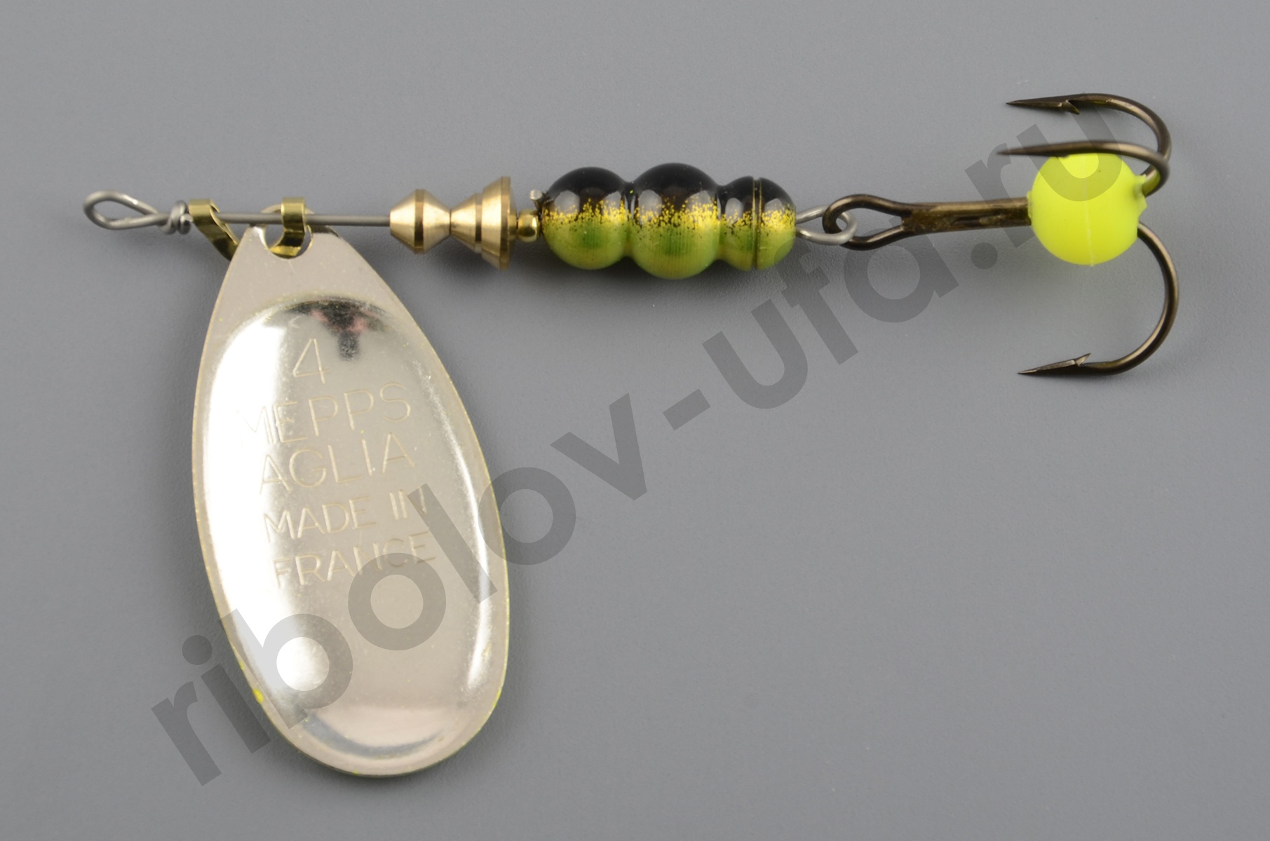 Блесна Mepps Aglia-E № 4 серебро/зеленый (9гр)