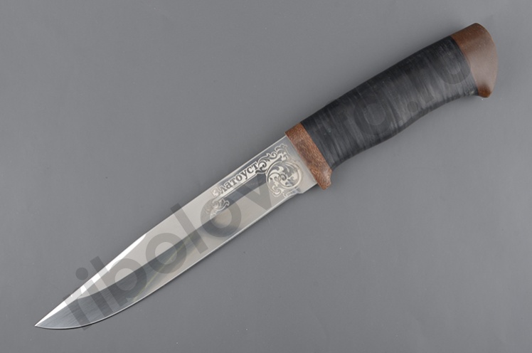 Нож Златоуст (С) Рыбак, рукоять: кожа наборная, текстолит