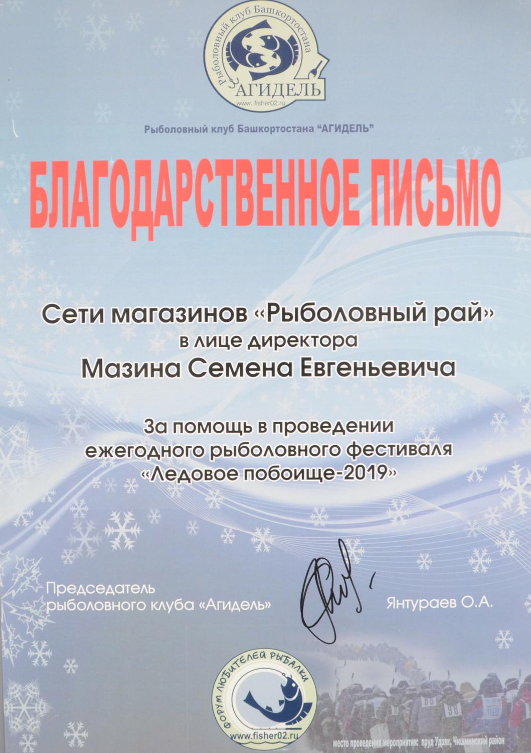 Благодарственное письмо - Ледовое побоище - 2019